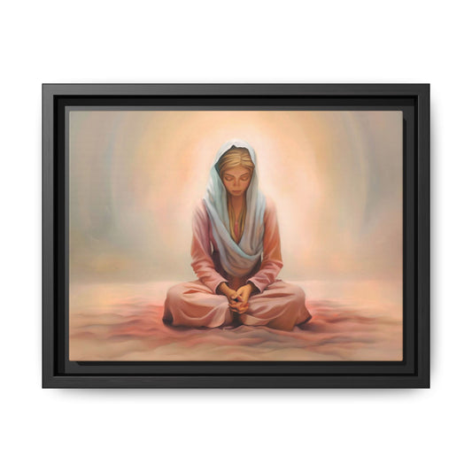 Stillness Framed Canvas Wall Art, Serene Meditation Decor, Spiritual Mindfulness Gift, Tranquil Room Accent, Woman Religious Art