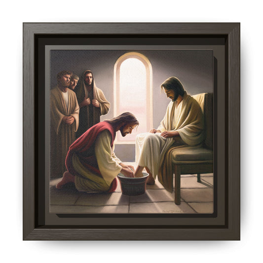 Jesus Washing Feet, Framed Canvas Print Art, Christ Washing Disciple's Feet, Christian Gift, Jesus Christ Serving Others, many sizes available