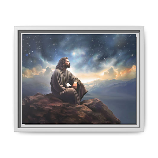 Jesus with The Stars, Canvas Print Art Framed, Jesus Christ Handmade Artwork, Deep Meditative Christian Gift