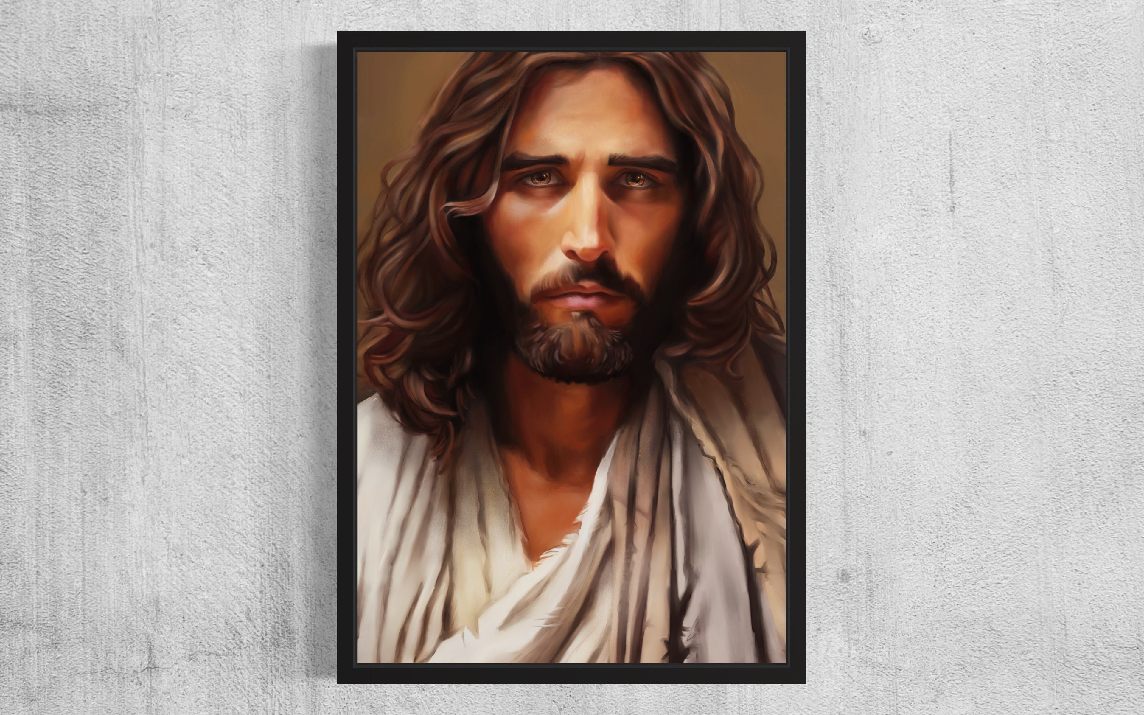 I wanted a meaningful title for this moment of Jesus’ earthly mission during what may have been his biggest struggle- where he gives his all in the Garden of Gethsemane. I tried to show him weighed down by the burdens of the world, his feeling alone in this darkest of nights. His eyes glistening with tears of emotion.